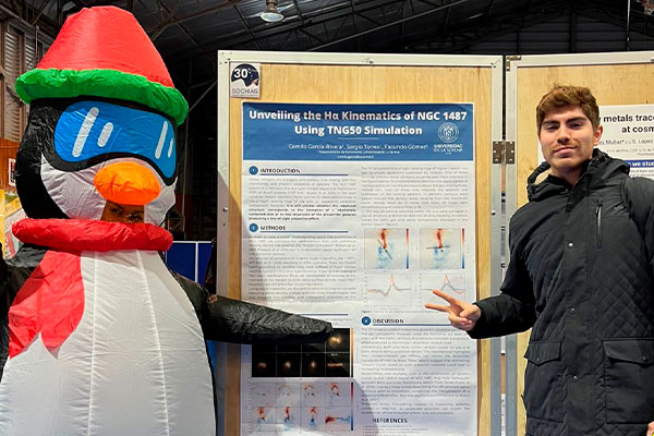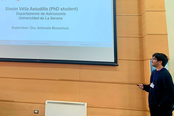 Por su parte Sebastián Ortiz, estudiante del Doctorado en Astronomía USerena, presentó la charla “Physical and Morphological Analysis of Galaxies in Star-Forming Compact Groups”, un estudio que analiza cómo las galaxias en grupos compactos con formación estelar interactúan entre sí, por lo que destacó que “este tipo de instancias tienen un valor científico muy alto, porque permiten conocer la calidad de astronomía que se está haciendo en Chile y discutir temas cruciales como la contaminación lumínica o el acceso a tiempo de telescopio”.