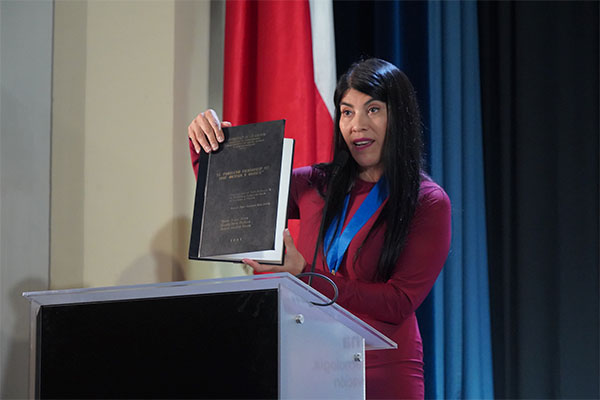La Ministra, profesora y licencia en Castellano y Filosofía de la casa de estudios, agradeció esta distinción y señaló que “la Universidad de La Serena es mi Alma Mater y le estoy muy agradecida, y volver después de 30 años es cerrar un ciclo: me siento en casa y con la convicción de que podemos hacer grandes cosas juntos”. Y agregó que “mi formación en la ULS, especialmente en filosofía, me dio herramientas clave como el pensamiento crítico. Es una institución que forma profesionales de nivel mundial, que hoy destacan en investigación e innovación en distintos países”.