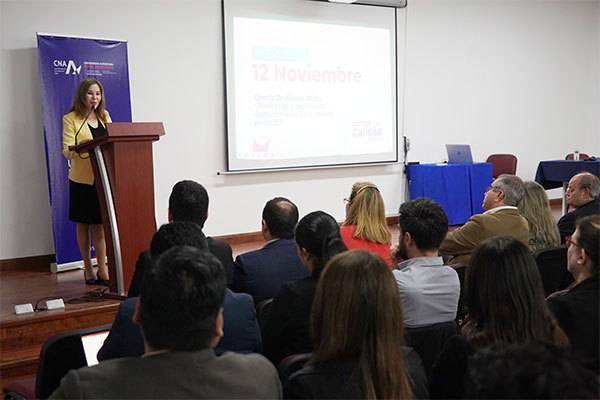 Durante su presentación, Rojas destacó que Chile es uno de los pocos países de Latinoamérica que tiene acreditación institucional obligatoria: “es una realidad de la que debemos estar orgullosos”, afirmó.